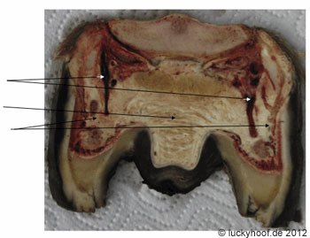 "Zwischen den Hufknorpeln befinden sich das Hufpolster und der innere Venenplexus, der bei Kompression den Rückfluss des venösen Blutes zum Herzen fördert."